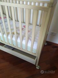 Coppia di lettini identici marca Erbesi, completi di materassi, coprimaterassi e cuscini, vendibili anche singolarmente. Il prezzo è riferito al singolo lettino.