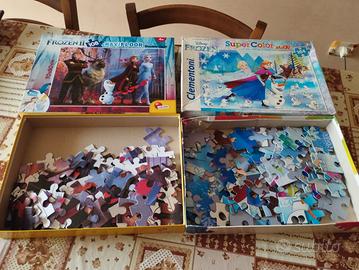 Coppia di puzzle di Frozen uno composto da 104 pezzi l'altro da 108 pezzi completi e in ottime condizioni.
