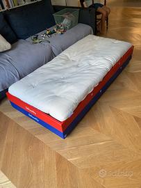 Vendo coppia di lettini montessori marca Woodly modello "Puro" grande (dimensioni 164x74x19 - Futon 160x70), in legno di faggio colori 1 rosso e 1 blu, completi di 2 futon originali 100% puro cotone, impilabili tra loro e utilizzabili anche come letto singolo più alto (vedere foto). Ottime condizioni. Costi di spedizione a carico dell'acquirente.