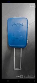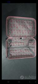 nuovissimi trolley da cabina, colore rosa e blu, con manico espandibile e fodera interna.