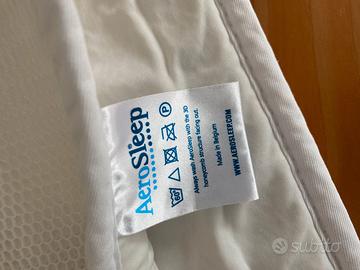 Vendo coprimaterasso/salvapipì con struttura 3D (riduce i rischi di soffocamento), traspirante, marca AEROSLEEP. Da posizionare sopra il materassino di un lettino con sponde, usando l'elastico negli angoli. Lavabile a 60°. Misure 118x55 cm.