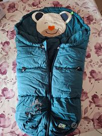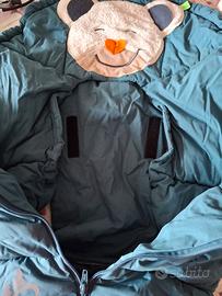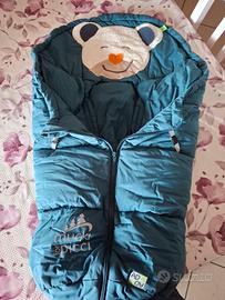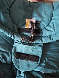 Sacco ovetto universale invernale color verde petrolio brillante. Morbido e imbottito con collare regolabile. Apribile completamente. Fessure per far passare le cinghie dell'ovetto quando si carica in macchina.