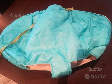 Comodo copricarrello per bambini completo di cinture per legare il bambino. Chiuso diventa una pratica borsetta