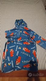 Accappatoio bambino Caleffi, fantasia Cars, taglia 4/6 anni. In un punto sulla manica la cucitura è un po' smollata e la spugna è leggermente consumata, ma assolutamente ancora funzionale. EU. 7.