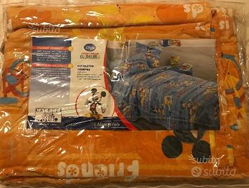 Copriletto primaverile trapuntato "Country" Caleffi, serie Disney Mickey Mouse Club House, color arancio singolo (cm 170x265), puro cotone, imbottitura anallergica di poliestere