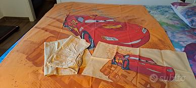 vendo parure copripiumino con lenzuolo con angoli e federa di Saetta McQueen del cartone animato Cars. marca Caleffi. per letto singolo. misure cm 220x140. come nuovo. solo ritiro a mano a Ballabio o Lecco