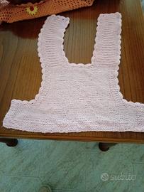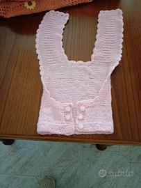 delicato e morbido capo per bimba 12-24 mesi realizzato a mano con cura. Lavorato con filato rosa. bordi con motivo ad onde. design a U per le spalline