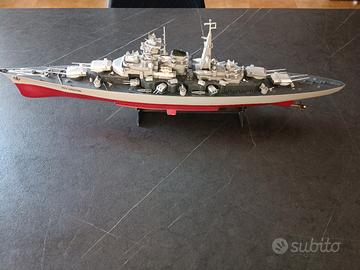 modello nave corazzata Bismarck radiocomandata, funzionante, galleggia e si muove in acqua, con gruppo batterie. stato come da foto.
