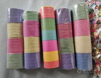 Un pacco di coriandoli con carta riciclata e 5 confezioni di stelle filanti. Ottimi per le feste e per i bambini!