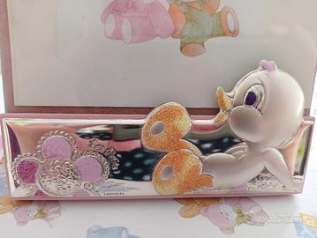 Cornice foto bambina in argento 925 NUOVA Cerdelli , con certificazione , misure 13 X 16, lavorata con smalto, glitter e punzonature.