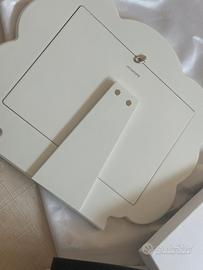 Cornice Porta Foto “My Family” da Bambino di Ottaviani realizzata in lastra di bilamina d'argento. La cornice porta un disegno con cinque ghiande dove si possono inserire le foto che rappresentano tutta la famiglia, e due scoiattolini, con rifiniture in azzurro chiaro. La Misura è int cm 5,5x5; cm 29,5x1,5x25.