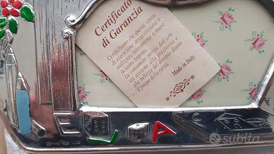 Cornice realizzata interamente a mano su lastra argento, come da certificato di garanzia.