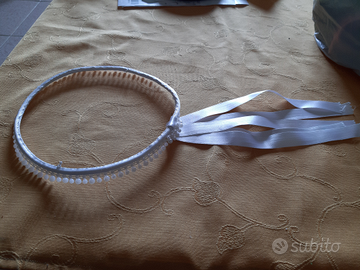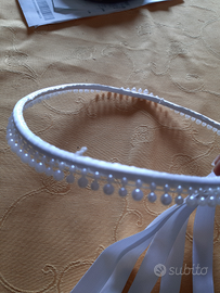 Coroncina per acconciature, o per comunione o per cerimonie , fatta a mano , , mai indossata , semplice ma fa un grande effetto .Ai lati ha due piccole asole fatte con il filo per appuntarla ai capelli .