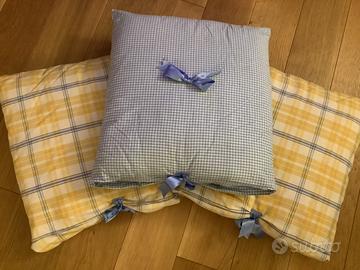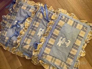Set fatto a mano in puro cotone azzurro e giallo: