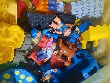 Enorme cesto( non incluso) di costruzioni Lego duplo originali, numerosi set all'interno: Camion di saetta Mc Queen, due treni funzionanti con rotaie, fattoria, parco giochi, bancarella, mercato, Pow Patrol,molti veicoli , betoniera, auto postino, camioncinietc...molti animali, tantissimi personaggi. Vendo in blocco. Ritiro a mano il pacco andrebbe ben oltre i 20 kg