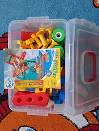 Vendo cestello costruzioni "Piccolo Ingegnere" della Gigo, composto di 79 pezzi + libro istruzioni con le immagini di 45 composizioni di diversa complessità.