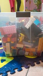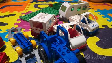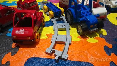 Scatola 40×60 piena di costruzioni lego con personaggi,ferrovia completa, macchine,camioncini,camper,ambulanza,polizia. Ritiro a mano
