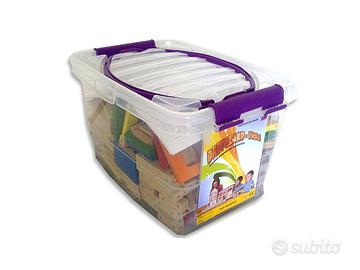 Un ampio pacchetto di kit di 124 pezzi destinati agli asili e alle strutture scolastiche (?KD). Puoi costruire 40 o più varianti di costruzione: include tutti i tipi di tetti.