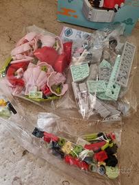 Gioco di mattoncini da assemblare. Il risultato sarà una coccinella e un fiore di colore rosa. Tutto esattamente come in foto.