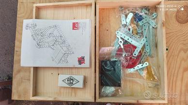DERRIK Costruzioni metalliche con viti e dadi, la confezione contiene un piccolo pannello fotovoltaico che aziona un motorino elettrico per l'azionamento del modello. La scatola è assolutamente nuova con qualche segno del tempo passato in cantina gli elastici facente funzione di cinghia di trasmissione sono da sostituire. Preferirei ritiro a mano per chi si trova a Roma. Comunque non esitate a chiamare per qualsiasi informazione, grazie. Prodotto Italiano