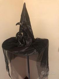 Taglia: M – Condizioni: Ottime, mai usato. Vendo incantevole costume da befana-strega composto da: -Abito viola con sovrapposizione in pizzo nero e dettagli in raso -Maniche in tulle con riflessi scintillanti -Cappello a punta in tessuto lucido con piume e velo trasparente -unghie da strega! Un look raffinato e misterioso, ideale per feste di Halloween, eventi a tema o spettacoli scolastici. Ritiro a mano Messina, oppure spedizione disponibile da concordare