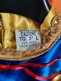 Costume Biancaneve, taglia 4/6 anni, completo di accessori (mantello, fiocco, fascia). Made in Italy! Alta qualità del materiale e rifiniture. Usato una volta.