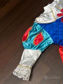 Completa l’abito, una mantella di ciniglia rosso con chiusura strappo