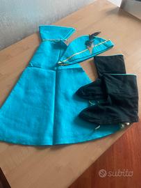 Costume carnevale da “Principe” in panno azzurro composto da: Casacca Calzamaglia. mantello Cappello Copriscarpe. Per bimbo 5/6 anni. € 10