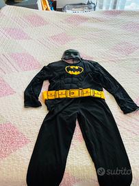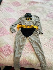 Costume carnevale Batman 2 in 1 con casacca imbottita con muscoli,pantaloni,copri stivali,mantello,maschera Colore nero e grigio Taglia 8/10 anni 124cm