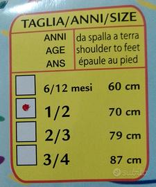 Bellissimo costume di carnevale taglia 1 - 2 anni cm 70 è nuovo con confezione originale.