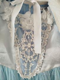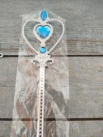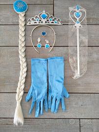 Abito da principessa delle nevi. Completo di mantellina. Ottime condizioni. Accessori: anello, orecchini, bacchetta magica, guanti raso azzurri, corona e treccia finta.