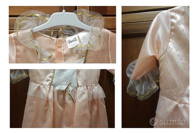 Vestito originale Mattel linea Barbie principessa, per bimba di 5-7 anni (116 cm), sui toni del salmone, bianco ed oro.