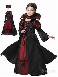 Costume carnevale Vampira vampiro bambina vestito deluxe gotico 120-130cm