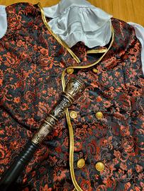 vendo costume conte Dracula per bimbo alt. 140,00 cm. Composto da pantaloni, camicia con panciotto incluso, colletto con sbuffo, mantello, bastone plastica. usato due volte, perfetto. Ritiro a mano.
