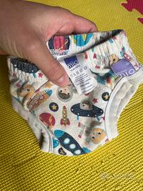 Costume contenitivo lavabile bambino mio, molto comodo, sulla taglia c'è scritto 18-24 mesi ma il mio bimbo l'ha usato dai 12 mesi quindi veste un po' piccolo e l'azzurro ha perso un po' il colore a causa del cloro della piscina