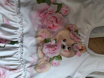 splendido costume da bagno Monnalisa con orsetto e volant rose rosa taglia 9 mesi mai indossato per taglia errata solo lavato per misurarlo