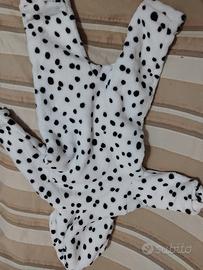 Morbido costume da dalmata per neonato, perfetto per travestimenti o per stare comodi.