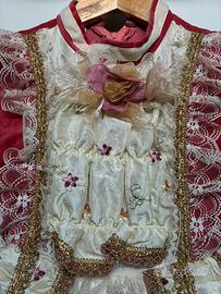 Costume Originale Carnevale di Venezia, Elisa di Rivombrosa. La misura riportata sulla confezione sarebbe una IV da bambina, nelle foto in allegato ho inserito i cm. Ipotizzo che sia un 3/4 anni ma non sono sicura. Il vestito è accessoriato di tutto, cerchi e cappello. È in ottime condizioni anche se presenta alcuni segni di “vecchiaia”. Nelle foto è allegato l’attestato di autenticità. Il pacco risulta essere abbastanza ingombrante, per chi volesse potrei spedirlo senza la confezione originaria per ridurre i prezzi di spedizione. Per ogni informazione sentitevi liberi di contattarmi :)
