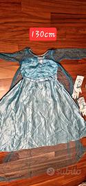 Vendo costume di carnevale Elsa di Frozen completo di guanti e treccia. Lo strascico è lunghissimo e ha un piccolo buco sul fondo già riparato che non influisce sul costume. Taglia 8 anni, 130cm.