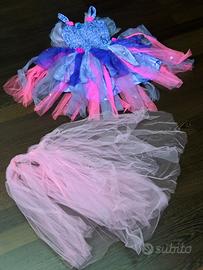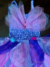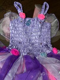 Bellissimo costume ispirato alla fatina, Trilli Corpetto rosa elasticizzato con dettagli scintillanti gonna multistrato altrrno di tulle nei toni del rosa e viola sottogonna in tulle tosa