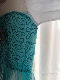 Vestito Carnevale bambina Elsa di Frozen, con strascico in velo. Fili tirati sottobraccio come da foto, ma ininfluenti per l'utilizzo