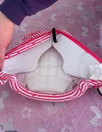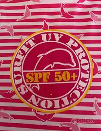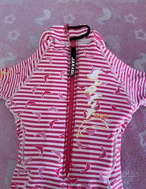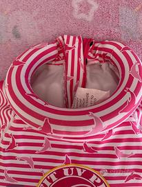 Costume galleggiante e con protezione solare SPF 50+. Ha parti galleggianti fatte di schiuma leggera e flessibile sulla schiena, sul petto ed un anello intorno al collo. Tutte queste parti sono rimovibili. Rosa con strisce e piccoli delfini su tutto il costumino. Comoda cerniera sulla schiena con sicurezza a strappo per bloccarla. Usato pochissimo pari al nuovo. Eta 4/5 anni, è molto elastico. Il costume galleggiante Swimsafe Floatsuit permette al bambino di approcciarsi all'acqua in totale libertà e sicurezza .Senza l'ingombro dei classici sistemi di galleggiamento, il bambino può muovere liberamente gli arti e il resto del corpo. Questa liberta dei movimenti e il galleggiamento sicuro, permettera ai bambini di vivere il contatto con l'acqua serenamente. Acquistato a 48,90€ Non effettuo spedizioni con InPost.