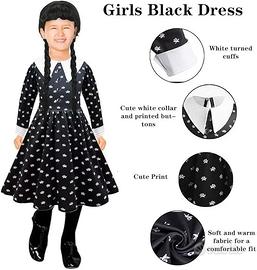 Adatto a bambine/ragazze di 12-13 anni, altezza 130-150cm. Vedi tabella taglie nelle foto! Costume per Bambine "Wednesday" Set a 6 Pezzi – Abito Gothico Nero con Parrucca, Borsa, Calze, Collana e Orecchini – Costume per Carnevale, Fasching, Cosplay e Feste - Set di Costume per Bambine "Wednesday": Questo costume da carnevale per bambine a 6 pezzi comprende un abito, una parrucca nera, una collana gothica, orecchini a forma di "W", una borsa per bambini e calze da ginocchio. Un Pacchetto di Ottimo Rapporto Qualità - Prezzo per i giochi di ruolo, Halloween e Carnevale! - Qualità Eccellente: L'abito "Wednesday" è realizzato in un tessuto di alta qualità, morbido e liscio, che è amichevole per la pelle e comodo. Un regalo perfetto per gli appassionati di film e i fan del gothic. - Design Realistico: Con l'abito nero gothico, la fascia elastica regolabile e gli accessori esquisiti come la parrucca nera, la borsa e le calze, le bambine si trasformano immediatamente nelle protagoniste dei drammi televisivi. - Taglie: Piccola (4 - 6 anni), Media (7 - 8 anni), Grande (9 - 10 anni) e Extra - Grande (10 - 12 anni). - Ideale per Diversi Occasioni: Perfetto per il Carnevale, Halloween, feste tematiche di horror e altro ancora. Un ottimo regalo per i fan di "Wednesday" e gli appassionati di gothic. Dettagli del Prodotto: - Colore: Nero + Bianco - Materiale: Poliestere + Metallo + ABA - Metodo di Lavaggio: Lavaggio a Mano Contenuto della Consegna: - 1 × Vestito Mercoledì Bambina - 1 × Parrucca Nera - 1 × Borsa per Bambini - 2 × Calze da Ginocchio - 1 × Collana - 2 × Orecchini