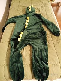 Costume/Tuta/Pigiama da Dinosauro per Bambino con Cappuccio. Costume Dinosauro Verde per Unisex, per Bambini Cosplay Halloween Party, Natale e carnevale, ottimo anche come pigiama.
