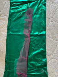 Vendo costume sirena verde acqua con inserti in tulle rosa e bianco. Lunghezza totale 120 cm, lunghezza dalla vita ai piedi (vano per gambe) 83 cm, larghezza in vita 30 cm. Per bambina 6-8 anni. In condizioni ortime perche usato una volta sola.