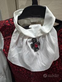 - Jabot bianco con croce nera e dettaglio rosso.