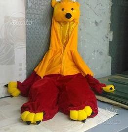 Costume Winnie the Pooh con cerniera anteriore. colore arancio rosso con forma testa orso e zampe. lunghezza 60cm