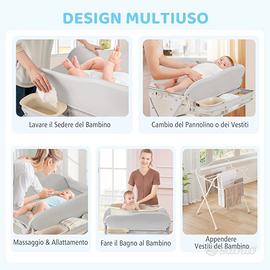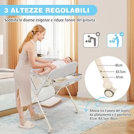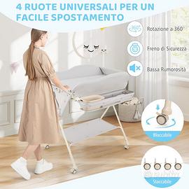 COSTWAY Fasciatoio Pieghevole Neonato, Fasciatoio Portatile con Altezza Regolabile a 3 Livelli, con Bacino, Cestino Portaoggetti e Cintura di Sicurezza, 4 Ruote Bloccabili, Portata 11 kg (Grigio)