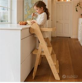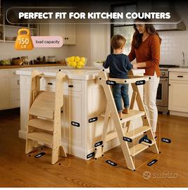 COSYLAND Sgabello pieghevole da cucina con rete di sicurezza, con torre regolabile in altezza per bambini, salvaspazio, con blocchi di supporto, Foldi (naturale)
