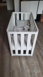 E' adatta per bambini da 0 a 15 mesi ed è realizzata il legno di faggio di alta qualità. E' una culla che cresce con il bambino trasformandosi in base alle sue esigenze. Infatti oltre che a fungere da culla si trasforma in un box e in un divanetto o portagiochi. La sua caratteristica principale è quella di facilitare il controllo del bambino durante il sonno e l'allattamento al seno, permettendo un migliore riposo anche alla madre.